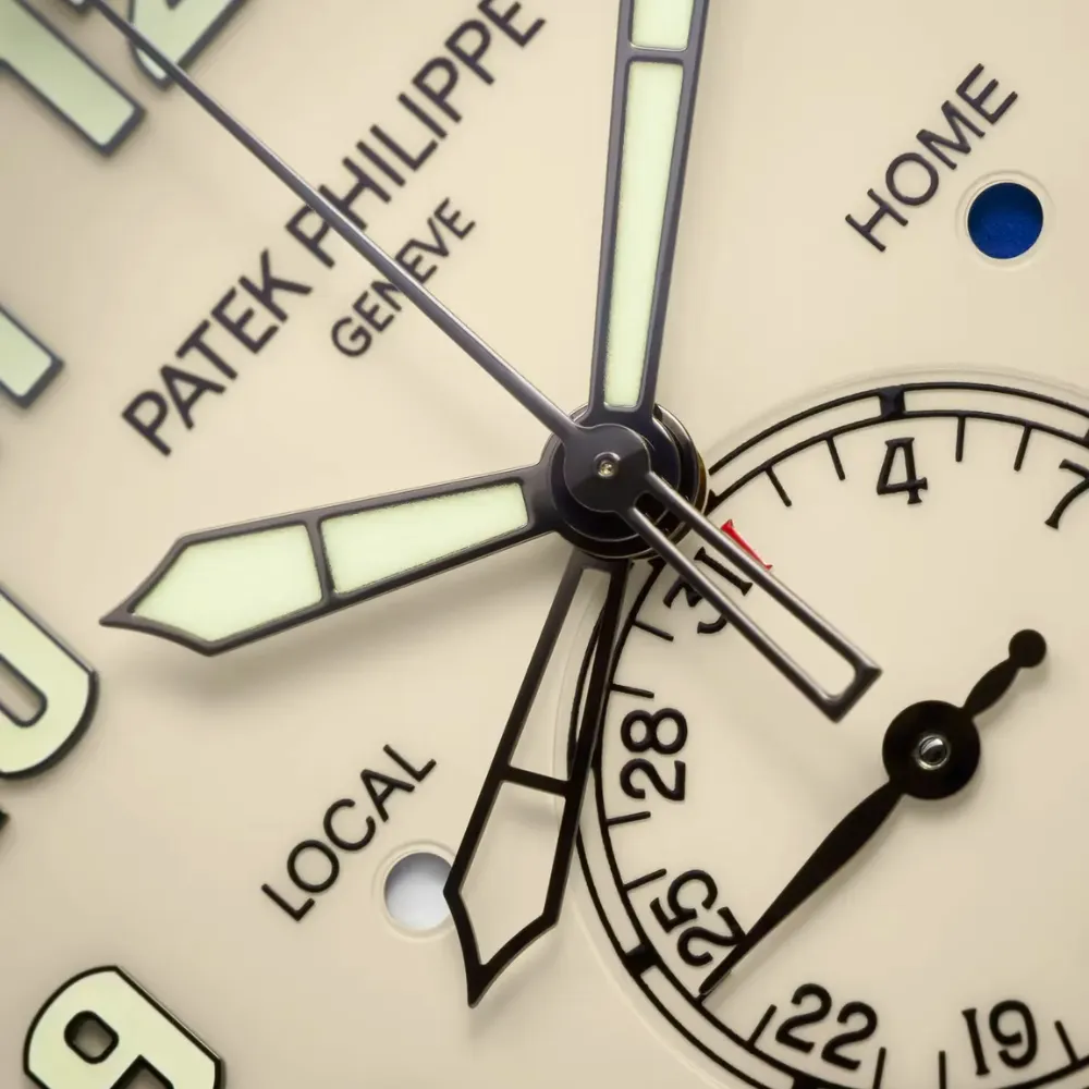 The 5524G-010 is a refined travel companion that merges instrument-watch clarity with Patek Philippe finishing. Its ivory palette softens the pilot-watch look, while the FUS mechanism ensures effortless time-zone changes—making it a functional, elegant choice for collectors who value both usability and haute horlogerie.