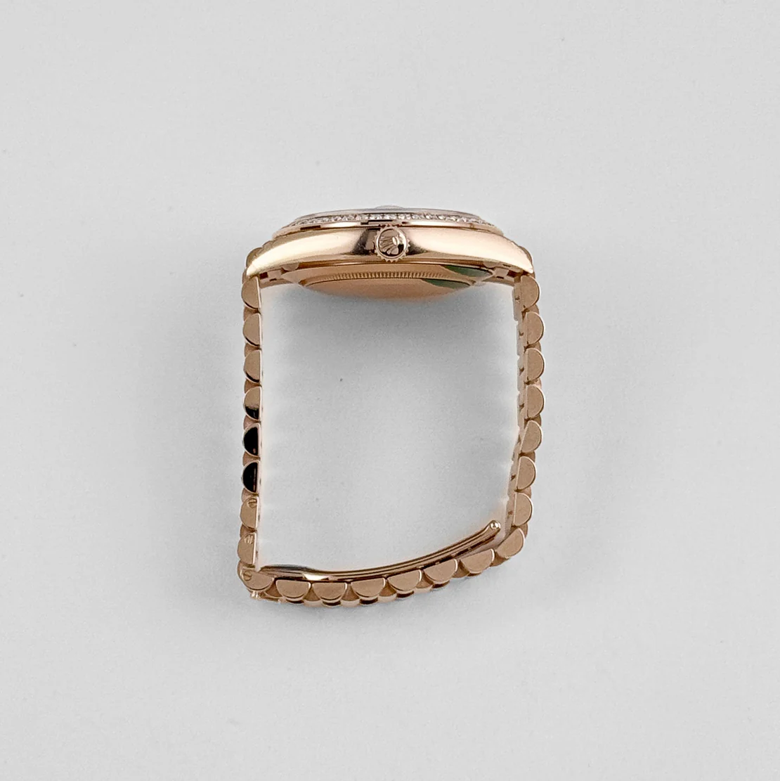 • Dial: Rose gold dial set with diamond hour markers, offering perfect legibility and refinement.