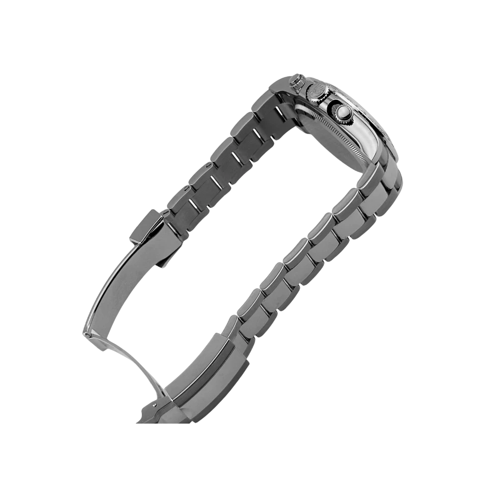 - Case: 18K white gold, 40 mm, Oyster construction with screw-down chronograph pushers and Triplock winding crown.