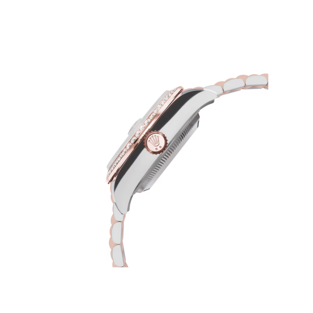 Its fluted bezel in white gold enhances the watch’s distinctive character, while the slate dial with sunray finish plays beautifully with light, shifting tones as the wrist moves. The Jubilee bracelet, known for its five-piece links and comfortable fit, completes the design with elegance and versatility, making this model suitable for both formal occasions and daily wear.