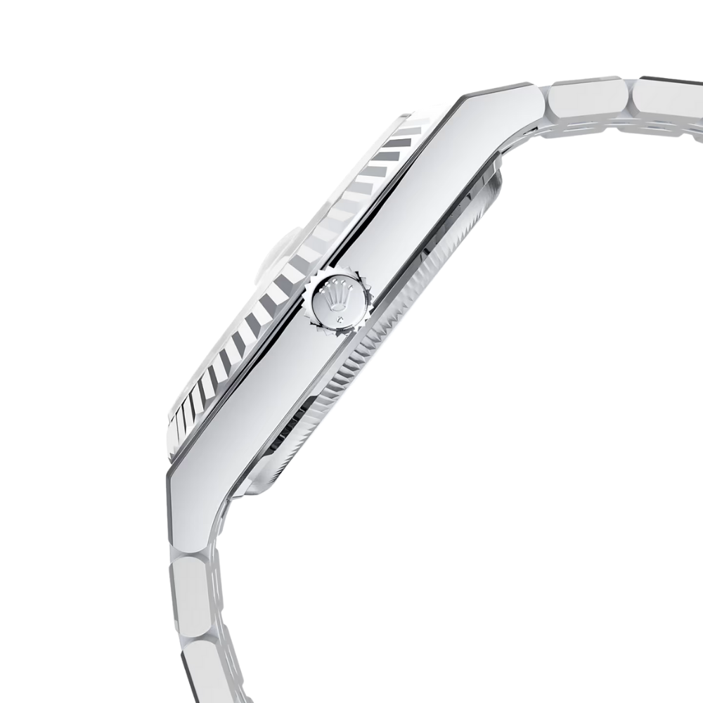 The Rolex Land-Dweller 36 mm Ref. 127236 in platinum is a refined expression of the collection’s elegance in a smaller, versatile size. The use of 950 platinum gives this watch a distinguished presence, while the 36 mm Oyster case ensures comfort and wearability across a wide range of wrists. Its iconic fluted bezel highlights the brilliance of platinum and adds a timeless design element.