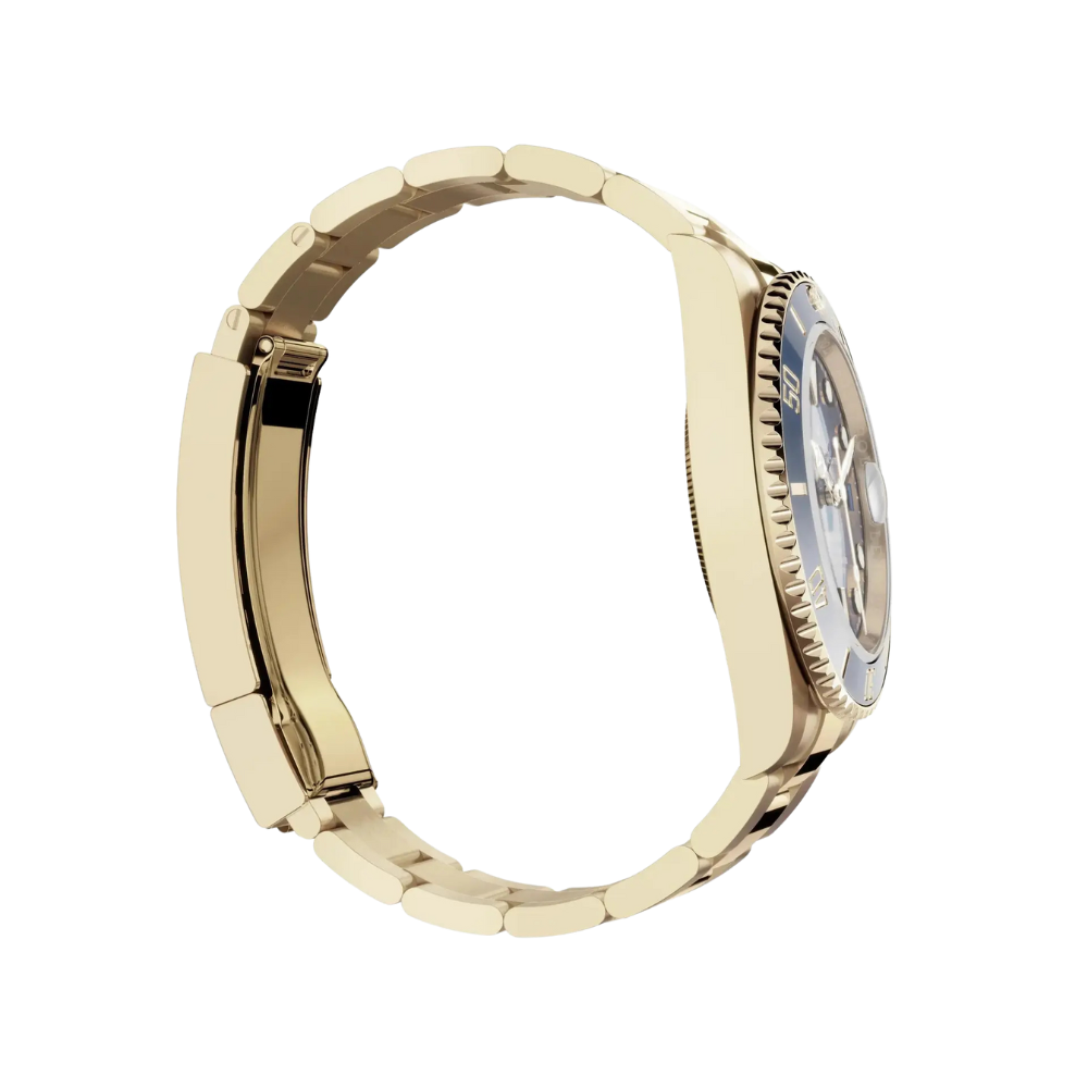 The Rolex Submariner Date Ref. 126618LB-0002 represents the perfect harmony between Rolex’s professional diving heritage and contemporary luxury. Its 41 mm Oyster case, forged in solid 18 ct yellow gold, ensures both robustness and sophistication. The unidirectional rotatable bezel with a blue Cerachrom ceramic insert and gold-coated numerals offers exceptional resistance to scratches and corrosion while enhancing its visual allure. The sunburst royal blue dial features large Chromalight hour markers and hands emitting a long-lasting blue glow for optimal legibility in low-light conditions. The signature Cyclops lens magnifies the date at 3 o’clock for easy reading. Inside beats the Rolex Calibre 3235, a new-generation self-winding mechanical movement that combines high precision, power reserve, and reliability. Equipped with the Chronergy escapement, Parachrom hairspring, and Paraflex shock absorbers, it delivers a 70-hour power reserve and precision certified as a Superlative Chronometer (−2/+2 seconds per day). The watch is fitted with a solid-link Oyster bracelet in 18 ct yellow gold, complete with the Oysterlock safety clasp and Glidelock extension system for quick adjustments without tools. Water-resistant to 300 meters (1,000 feet), the 126618LB-0002 stands as the ultimate symbol of Rolex’s ability to merge professional performance with timeless luxury.
